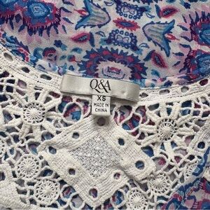 Q&A Boho Chic Sleeveless Top crochet lace yoke layered blouse women's XS