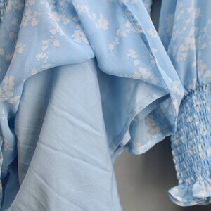 Q+A Los Angeles Blue White Smocked V-Neck Long Sleeve Mini Party Dress Medium