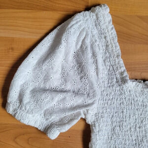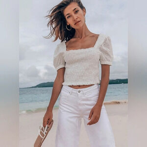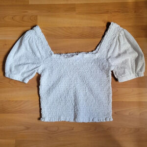 Q+A Los Angeles Puff Sleeves Smocked Square-Neck Top Size L Coquette Feminine