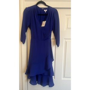 Q+A Los Angeles Women's Royal blue V-neck Faux Wrap Dress. Size Sm - NWT.