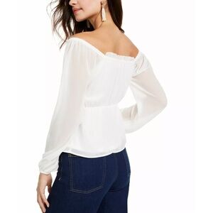 Q+A White Tie Ruched Long Sleeve Off Shoulder Top