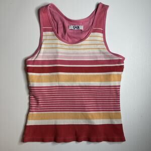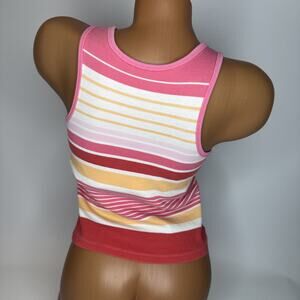 Q&A Y2K Ribbed Striped Tank Top Coquette Retro Sporty 90s Built In Bra XS