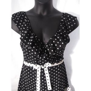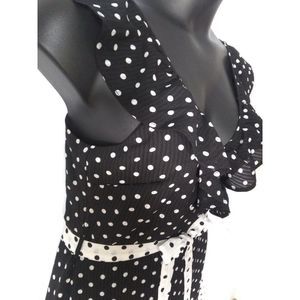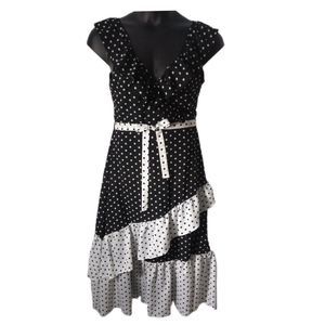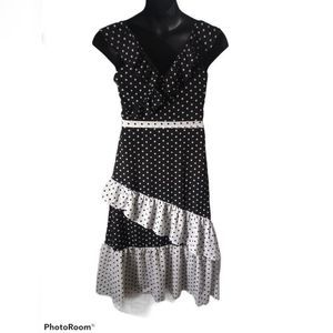 Q&A Polka Dot Midi Black White Tiered Dress XL NEW
