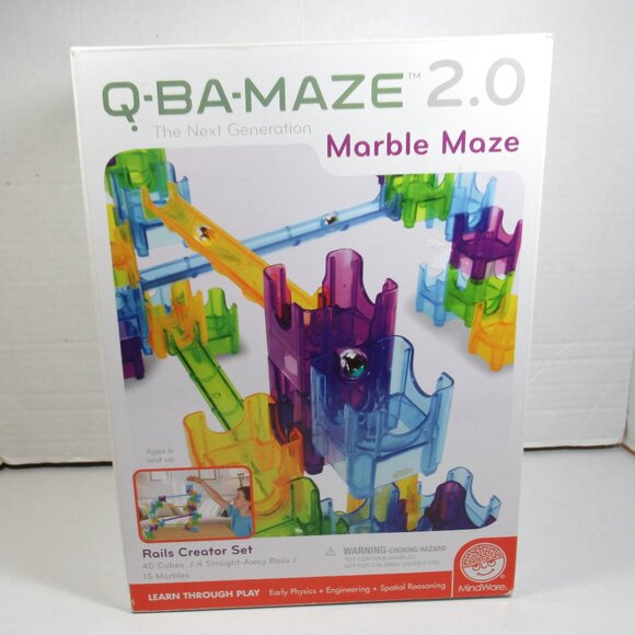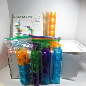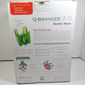 This listing is for the Mindware brand Q-Ba-Maze 2.0 marble run Rails Creator Set toy pictured. It is in good used condition with no missing parts. The box has seen better days, but the instructions, rails, cubes, and 15 metal marbles are all accounted for. This is a fun learning toy with many possibilities. This weighs 1lb 14 oz without a box or packing materials so it can only be bundled with lightweight items from my closet.