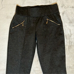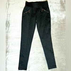 QED London Gold Zipper Charcoal Gray Pull On Stretch Skinny Leggings 10