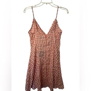 QED London frill wrap cami mini dress in pink gingham print NWT. Size 4. Elastic waist. Ruffle neck.