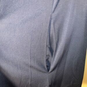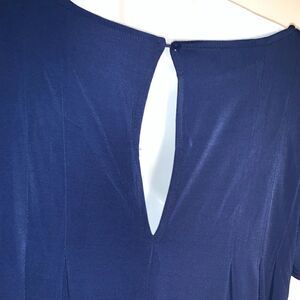Short sleeve romper with hidden pockets on each hip, keyhole back below button, pleating on each chest panel for a touch of style, size small with an Oversize fit, could easily fit a size medium body as well. NWT.