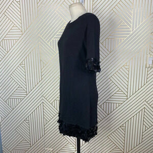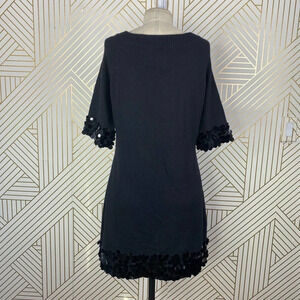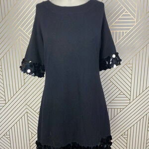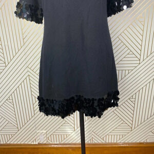 QI CASHMERE Short Sleeve Sequin Disco Beaded Dress in Black Size US Medium