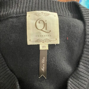 Qi Cashmere Short Sleeve Black Dress with Beaded Sequin Detail.