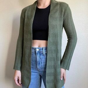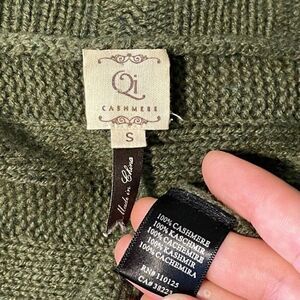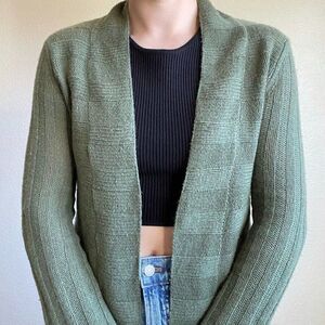 QI Cashmere Womens Green Soft Lightweight Open Cardigan Sz S