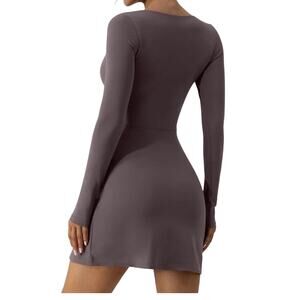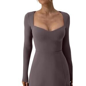 QINSEN MINI DRESS GOLF TENNIS PICKLEBALL SZ M GRAY LILAC SWEETHEART NECKLINE