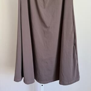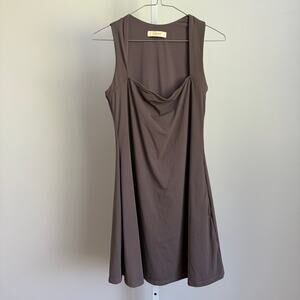 This sleek gray mini dress features a draped neckline and a flattering A-line silhouette. Made with stretch fabric, it moves with you—perfect for activewear, tennis, or athleisure looks. Lightweight and breathable.