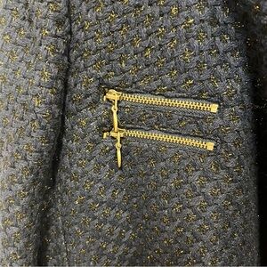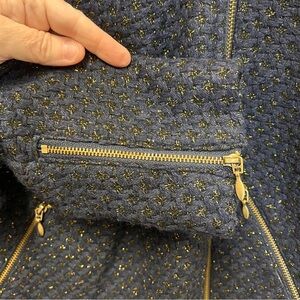 QMack Metallic Tweed Navy Blue Moto Jacket with Working Pockets Size Medium