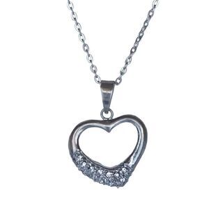 QQ# Italian Sterling 925 Silver Heart & Sterling Chain Link Necklace