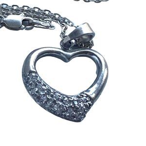 QQ# Italian Sterling 925 Silver Heart & Sterling Chain Link Necklace