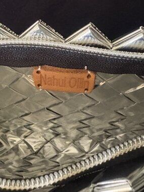 QR Code Nahui Ollin Black and White Wristlet with Red Leather Handle EUC