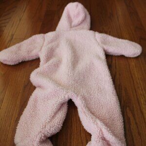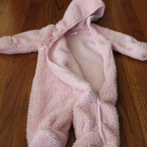 QT Baby Pink Faux Sherpa Fleece One Piece Snap Closure Snowsuit Size 3/6 Mos