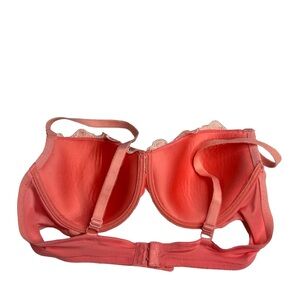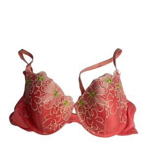 QT VNTG lace floral embroidered peach colored padded bra 36C pinup/rockabilly. Used but in excellent condition.
