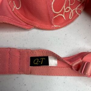 QT VNTG lace floral embroidered peach colored padded bra 36C pinup/rockabilly