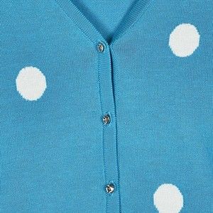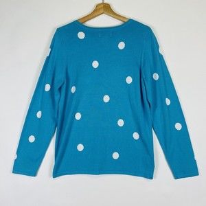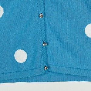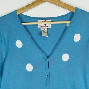 QUACKER FACTORY Aqua Blue Polka Dot Rhinestone Cardigan Sweater Womens Sz Small