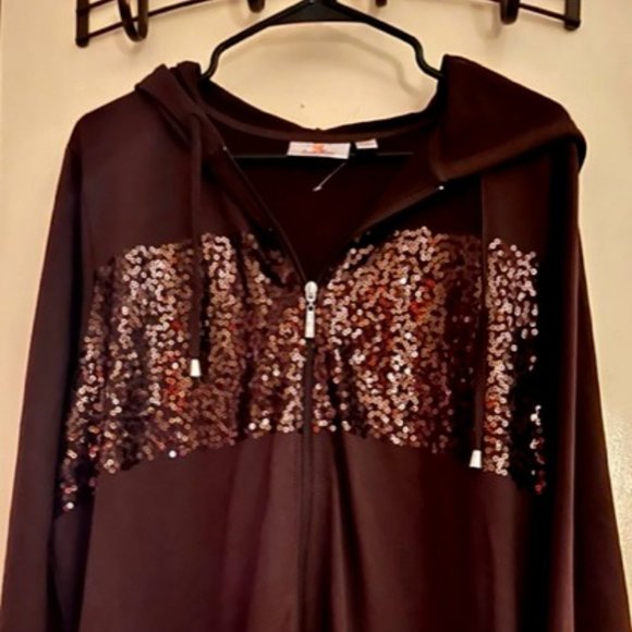 QUACKER FACTORY BROWN HOODIE SEQUINS WMNSZ XL BNWOT Tag Holder No Tag