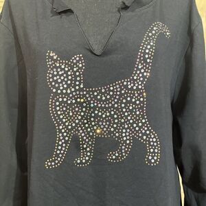QUACKER FACTORY Cat Lady Bedazzled Rhinestone Classic Sweatshirt Black Size 3X