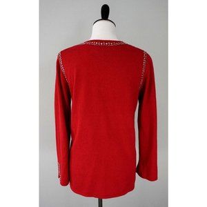 QUACKER FACTORY Red White Beaded Pearl Floral Sweater Size XS