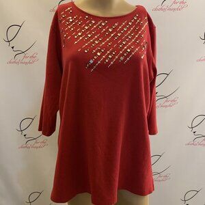 QUACKER FACTORY. Size Large. Embellished 3/4 Sleeve Cotton Pullover. B98.