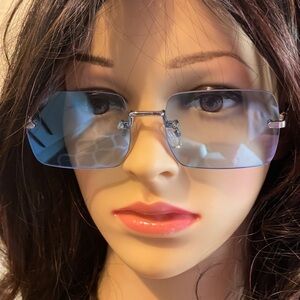 Updated in a rimless version, these fan-favorite Y2K-inspired square sunglasses are the key to looking effortlessly cool. Color: Silver/Blue