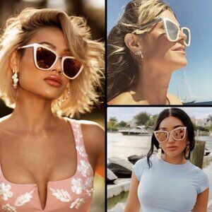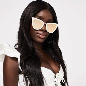 QUAY // ltd ed jlo collaboration white rose gold mirror lens ivory frame cateyes