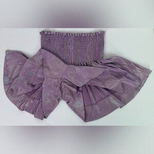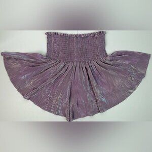 QUEEN OF SPARKLES Lavender Shimmer High Rise Swing Shorts Metallic Pleated Sz XS