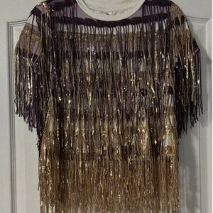 QUEEN OF SPARKLES PINATA SEQUIN SLEEVE PURPLE AND GOLD SHIRT XS NWT ECU / LSU