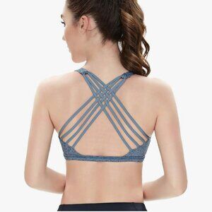 QUEENIEKE Womens Criss Cross Back Yoga Sport Bra Light Support, Sz M, Grey