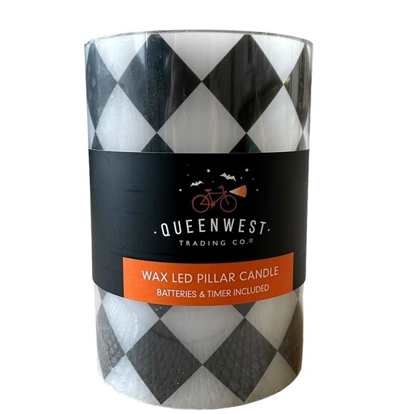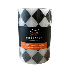 QUEENWEST Wax LED Pillar Candle Black & White Harlequin Checkered Fall Decor New