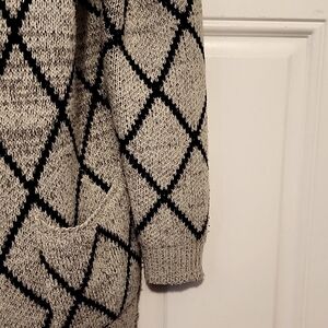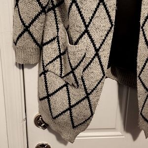 grey& black cardigan, pockets