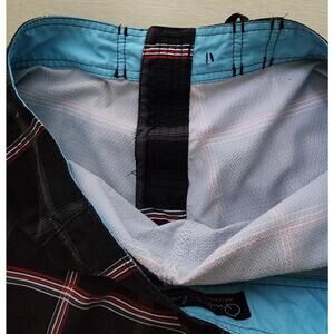 QUICKSILVER BOARD SHORTS-Black-Plaid-Waterman Collection-Size Small/32" Waist