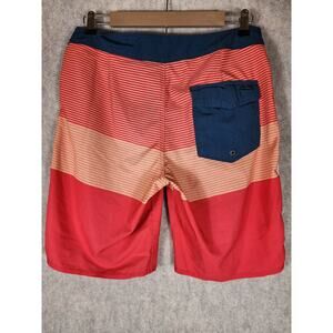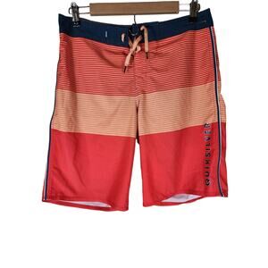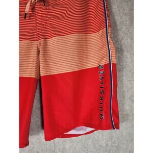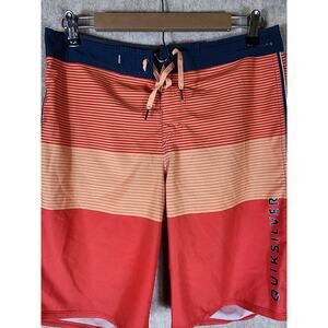 QUICKSILVER High Line Orange Red Blue Striped Board Shorts Swim Trunks SZ 30
