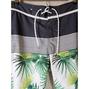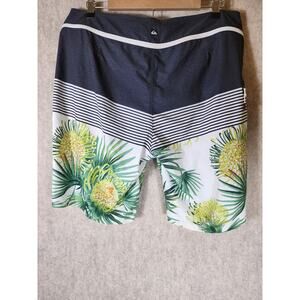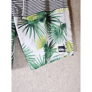 QUICKSILVER Men's Green White Floral Tropical Board Shorts Swim Trunks SZ 36