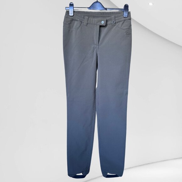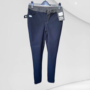 No pockets at all!!! Skinny Fit with an elastic band or "stirrup" that goes under the heel