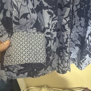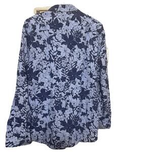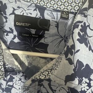 QUIETI Shirt Mens L Blue Floral All Over Print Button Up Flip Cuff Hawaiian
