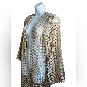 QUII Long Cardigan Lurex Floral Net Duster Cover Up Gold Color Size S