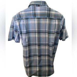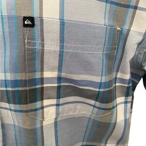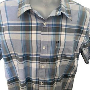 QUIKSILVER Blue & Gray Plaid Short Sleeve Button Up Shirt Men L Large