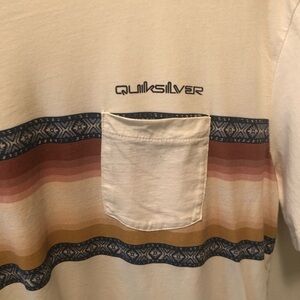 QUIKSILVER El Rey Stripes Mens Pocket Tee Sz XL SS Cream Blue Crewneck Cream