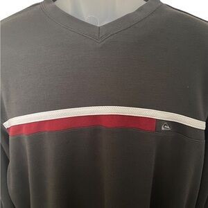 QUIKSILVER Long Sleeve Pullover Gray w/ Maroon & White Stripes Men XL