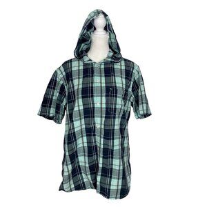QUIKSILVER Men Shirt Button Down Short Sleeve Hooded Checker Green Black M 43-2