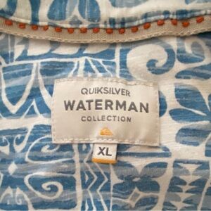 QUIKSILVER Waterman Collection Blue & White Hawaiian Collared Shirt Men XL
