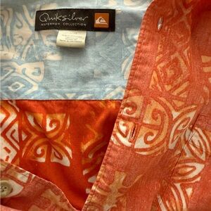QUIKSILVER Waterman Collection Orange Aloha Hawaiian Shirt Men L Large