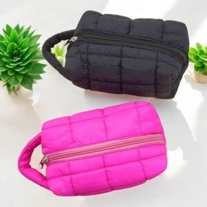 QUILTED PUFFY COSMETIC MAKEUP POUCH CLUTCH BAG
