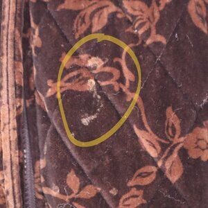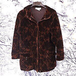QUILTED VELVET COAT M Jones NY Vintage Velvet *FLAWED* Hooded Fall Winter Brown