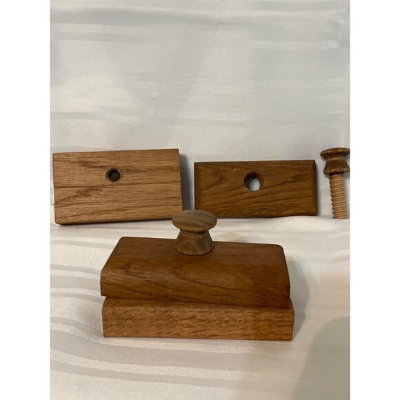 This set has wooden screw which is a nice accent when hanging. Asking $25 for both as a pair.